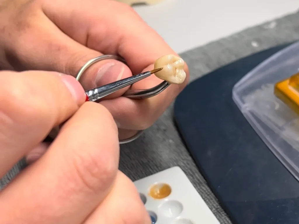 Die Zahnfarbe wird in der Regel anhand von Farbmustern bestimmt.